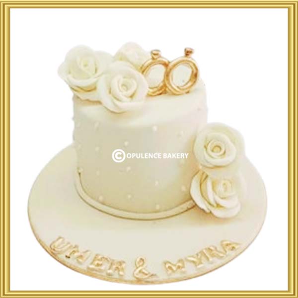 Order a Beautiful Engagment Ceremony Custom Cake For Couples. Buy this Birthday Cake Online In Lahore, Islamabad, Rawalpindi, Multan & Gujranwala Pakistan With Delivery. Ring Ceremony Cake in Golden & White. It is a Beautiful Designer Fondant Cake In 5 Pounds For a Engagment Event.